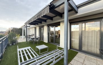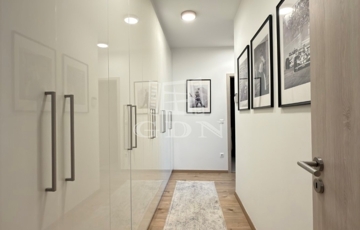 A lakás különlegessége a 52,46 m²-es, részben fedett terasz, amely tökéletesen alkalmas pihenésre, étkezésre vagy vendégek fogadására. A terasz további kényelmét elektromos napellenző biztosítja. Az ingatlan minden ablaka háromrétegű műanyag nyílászáróval és elektromos alumínium redőnyökkel felszerelt, a bejárati ajtó pedig több ponton záródó, prémium minőségű kivitel.