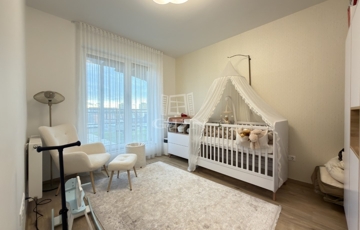 A 80,47 m²-es lakás amerikai konyhás nappaliból, valamint két különálló, szeparált szobából áll. A háztartási helyiségben külön WC kapott helyet, a fürdőszoba pedig káddal és további WC-vel felszerelt. A lakás nyugati és déli irányból is rendkívül világos, DNy-i tájolásának köszönhetően egész nap természetes fényben fürdik.