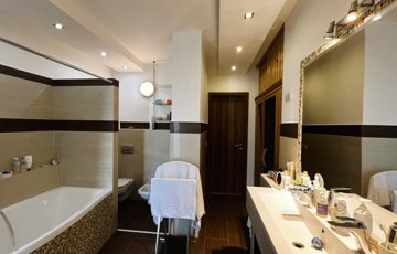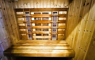 A lakás különlegessége az infraszauna sófallal, amely tökéletes kikapcsolódást kínál.