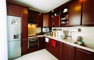 A lakás belső elrendezése átgondolt és praktikus: tágas nappali, három kényelmes hálószoba, két fürdőszoba (egy zuhanyzós, WC-vel; egy kádas, dupla mosdóval, WC-vel és bidével), így minden családtag számára biztosított a komfort.