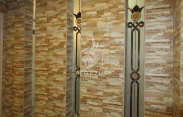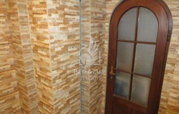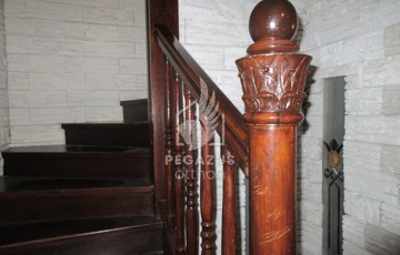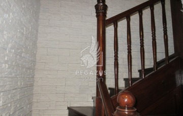 Kapcsolat: A két szintet tömör fa lépcső köti össze, melyet elegáns kőburkolat díszít.