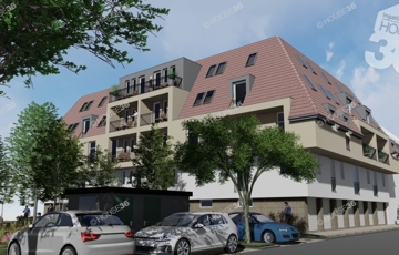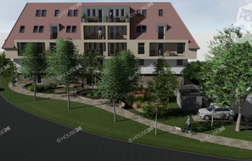 A társasház első emeletén, 46,37 m2 lakóterű, nappali + amerikai/konyhás lakás, 5,64 m2 erkéllyel megvásárolható.