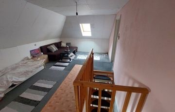 Az alsó szinten kényelmes konyha /étkező található egy légtérben az előszobával és nappalival, ill. egy fürdőszoba WC-vel, melyhez egy háztartási helyiség is kapcsolódik. Nagyon praktikusan egy közel 16 nm-es hálószoba is van a földszinten.