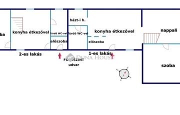 Az udvar közös, gyakorlatban mindenki a saját lakása előtti teret használja kertként (társasházi alapító okirat alapján).