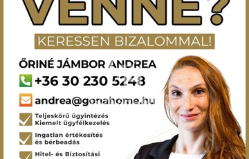 Ne hagyja ki ezt a ritka lehetőséget! Amennyiben az ingatlan megvásárlásához el kell adnia jelenlegi otthonát, úgy annak és a teljes folyamatnak a lebonyolításában is állok rendelkezésre!