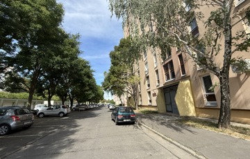 A környék kultúrált, parkosított, nagy, árnyékot adó fákkal, valamint nem messze van egy új sportpálya és játszótér. A közelben vannak a nagyobb boltok, közvetlen közelében van a buszmegálló, parkolni pedig közvetlenül a ház előtt lehet.