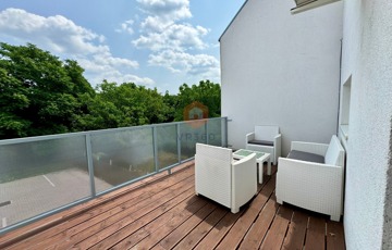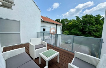 A lakás nyugati fekvésű, világos, teljesen bútorozott és gépesített, valamint klímával felszerelt. A tágas nappalihoz egy 13 m²-es, kényelmes terasz is tartozik, amely ideális kikapcsolódásra vagy tanulásra. A fürdőszoba és a WC külön helyiségben található.