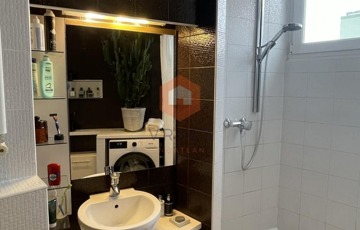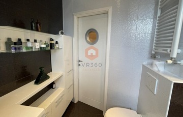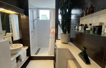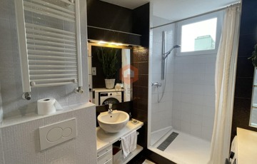 Fürdő épített nagy méretű zuhanyzóval, Wc -vel egy helyiségben.