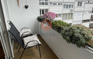 Az erkély 5 m2-es , beépített, hangulatos, csendes parkra néző, a hálószoba nagyméretű ablakai szintén a csendes parkra néznek.