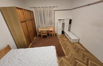 A szoba parkettás, a fürdőszoba és a WC külön helyiségben található.