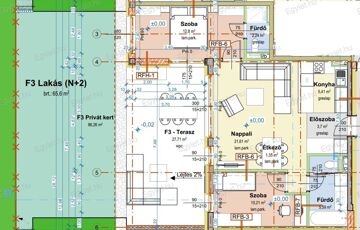 A lakás nettó mérete terasz nélkül: 63 nm.