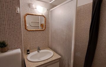 A fürdőszoba és a wc egyben van, egy nagyobb zuhanyzó is helyet kapott.