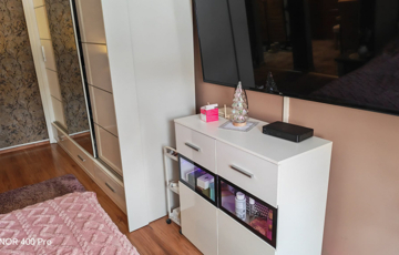 A lakás méretét meghazudtoló belső elrendezéssel rendelkezik. Miután földszinti így csupán 4 lépcsőfokot kell megtenni a lakásig. Klima van.