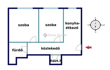 2 külön bejáratú szoba, tágas konyha-étkező, fürdőszoba wc-vel, közlekedő és háztartási helység. A lakás a tavalyi évben került felújításra, kizárólag minőségi anyagokkal, igényes kivitelezéssel, a lakást még nem lakták!