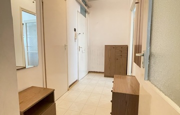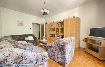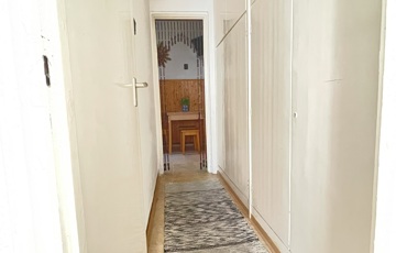 A lakás körbejárható, praktikus elrendezésű. Az előszobából külön nyílik a nappali és a konyha, a hálószoba a nappaliból és a folyosóról is megközelíthető. A folyosón nagy méretű beépített szekrény található. A fürdőszoba és a WC külön helyiségben van.
