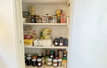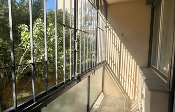 A nappaliból nyíló erkély csendes, parkosított területre néz, biztonsági ráccsal ellátott. A konyhához kamra is tartozik.