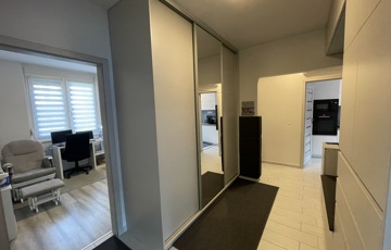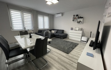 Korzó üzletház közvetlen szomszédságában eladó egy 87 m²-es, első emeleti, erkélyes, 3 szoba + nappalis lakás, amely vezeték szintig felújított, igényes, modern kialakítással várja új tulajdonosát.