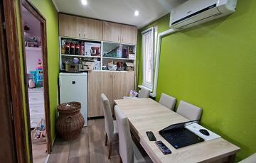 A konyha jól felszerelt, a konyhabútor, mosogatógép, tűzhely és a sütő is az ár részét képezi, az étkezőben található beépített szekrénnyel együtt, a többi bútor megbeszélés tárgyát képezi.