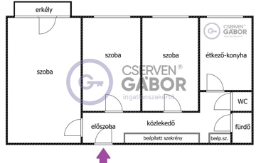 Elrendezés tekintetében a 61 m2es lakótér minden szempontból praktikusnak mondható. Minden szoba külön bejáratú, a félszobák is tágasak, a mai szabvány szerint már egész szoba méretűnek számítanak. A fürdő és a WC egymástól elkülönülten, és ami mindent visz, az a konyha mérete, ami kényelmes és tágas, és ahogyan az a képeken is látszik, egy hatszemélyes étkezőasztal is bőven elfér benne úgy, hogy még a konyhapultnál is nyugodtan lehet serénykedni.