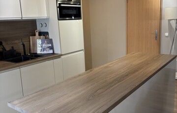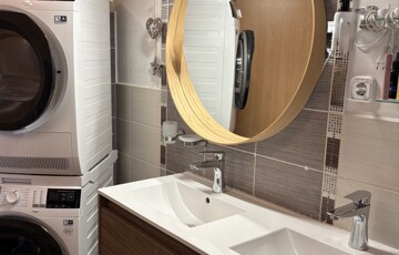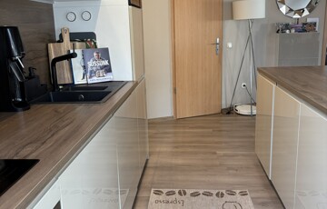 A lakás egyik központi helye a konyha igényes, beépített gépekkel (hűtő, mikrohullámú sütő, mosogatógép,, indukciós főzőlap, sütő, páraelszívó) felszerelt, nagyméretű konyha szigettel, rengeteg tároló hellyel. A konyha mellett található a kamra, amely rendkívül praktikus, további pakolási lehetőségekkel.