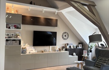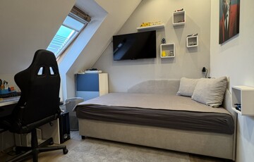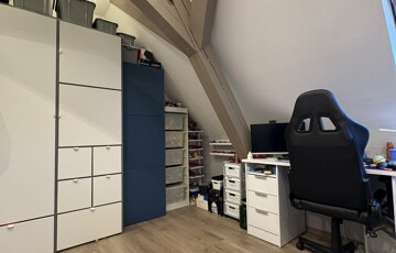 Szintén a folyosó fölött található a lakás saját padlása, egyedülálló tárolási lehetőséggel.
