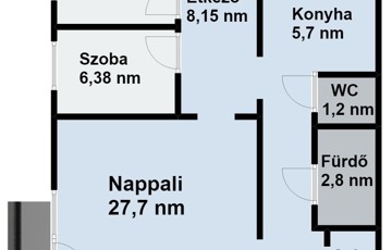 lakás, 58 négyzetméter