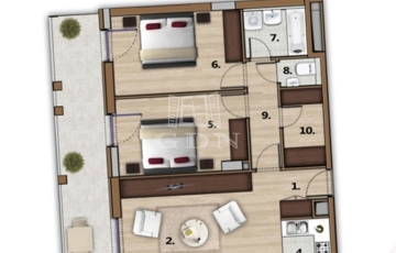 Mindkét hálószoba közvetlen erkélykijárattal rendelkezik.