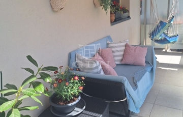 A nappaliból két erkélyajtón keresztül is megközelíthető a tágas, 34 m²-es erkély, amelyet körben árnyékolók tesznek még komfortosabbá.