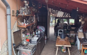 Az ingatlanhoz tartozó telekhányad, elő és hátsó kertre osztott (100 nm). A ház oldasó hosszában egy féltetővel fedett grill konyha (20 nm) került kialakításra, hideg-melegvíz kivezetéssel.