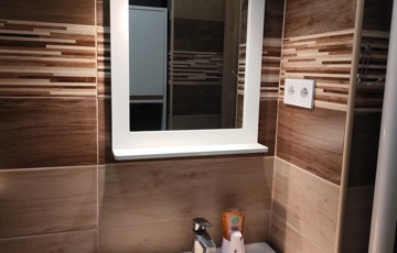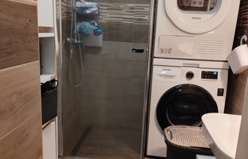 A fürdőszobában épített zuhanytálca és Ravak zuhanykabin került beszerelésre.