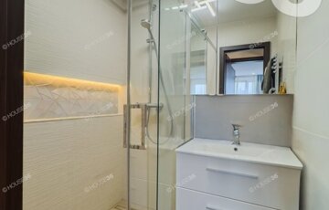 -Tágas, igényesen kialakított zuhanyzós fürdőszóba, Hansgrohe csapteleppel.