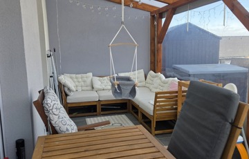 Saját udvar + terasz
