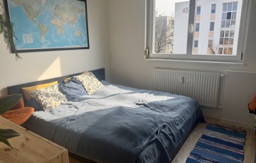 A nappali tágas és erkélykapcsolatos, a nagy ablakok miatt világos és jól berendezhető. A hálószoba nyugodt hangulatú, kényelmes méretű, ideális pihenésre.