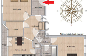 - Jelenlegi felosztása: előszoba, közlekedő, hálószoba, szoba, konyha-étkező, loggia, kamra, wc, fürdőszoba, hálószoba.