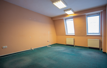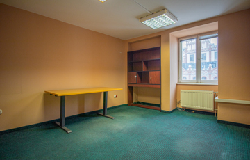 A lakás kétfrontos, az ablakok a felújított Postapalota felé illetve a belső udvar felé is néznek.