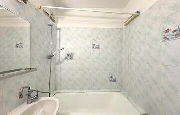 A fürdőszoba káddal rendelkezik, a WC egy külön helyiségben található.