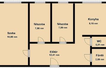 lakás, 59 négyzetméter