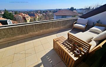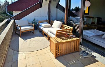 <p>Sasad tetején, kertes társasházban kínálunk eladásra egy 94 nm-es, második emeleti, kétszintes, amerikai konyhás nappali + 2 hálós, dupla komfortos, nagy teraszos, tágas lakást pazar panorámával.</p>